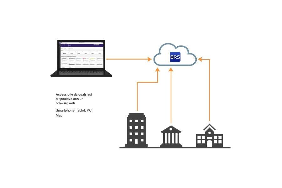Si può accedere a ERS ovunque tramite PC, tablet o smartphone, senza dover eseguire l’installazione sul server in locale ed eliminando la relativa manutenzione.